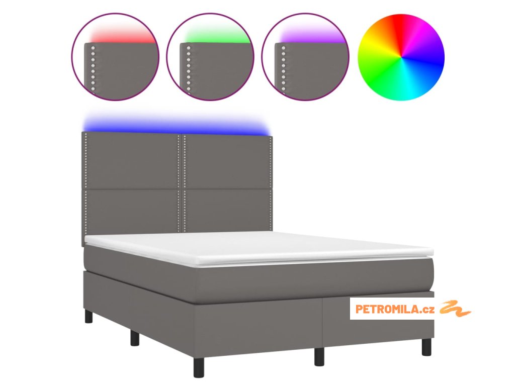 Box spring postel s matrací a LED šedá 140x200 cm umělá kůže