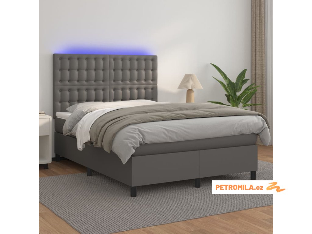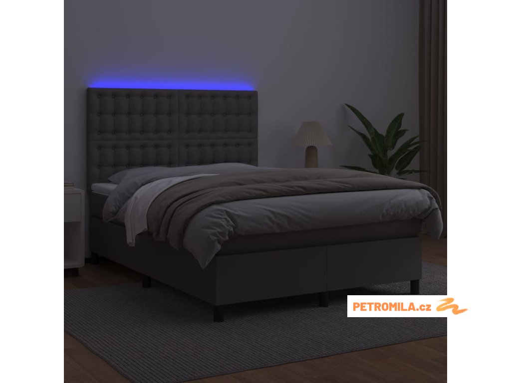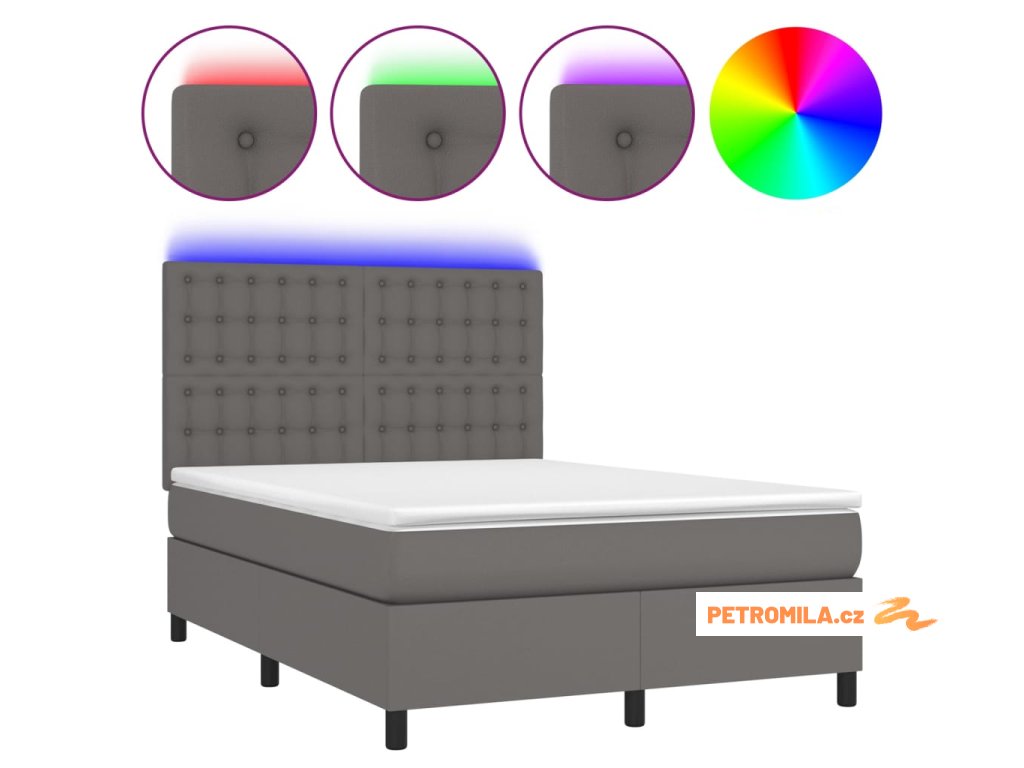 Box spring postel s matrací a LED šedá 140x200 cm umělá kůže