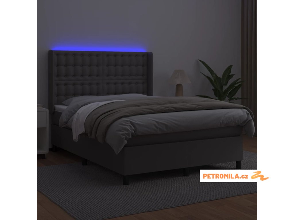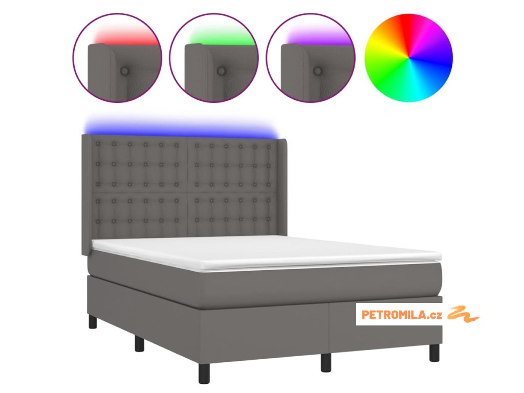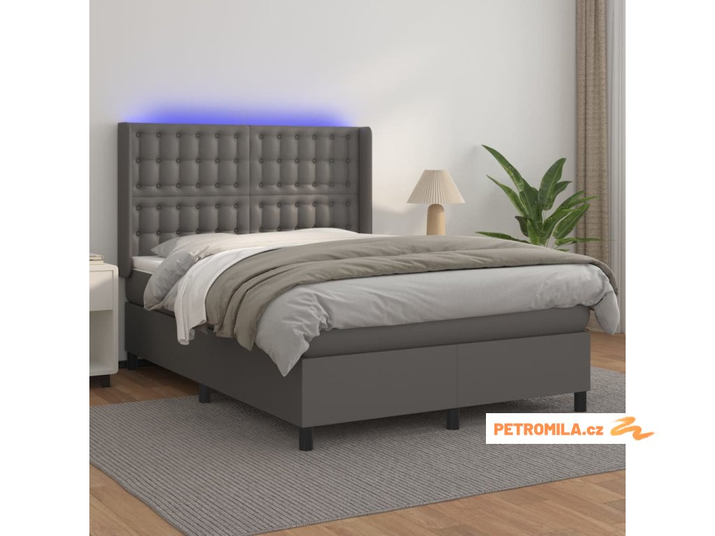 Box spring postel s matrací a LED šedá 140x200 cm umělá kůže