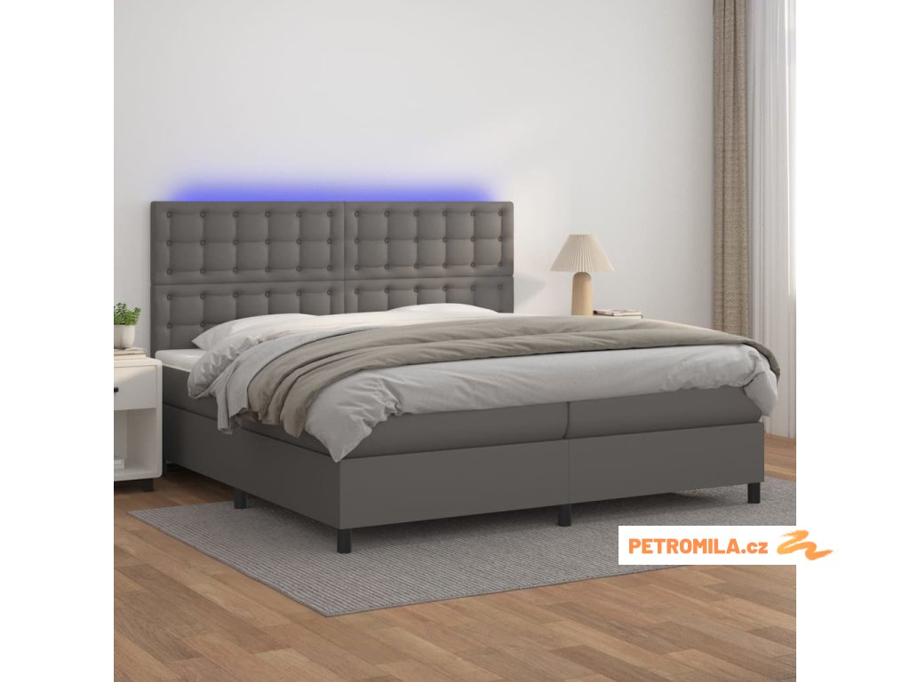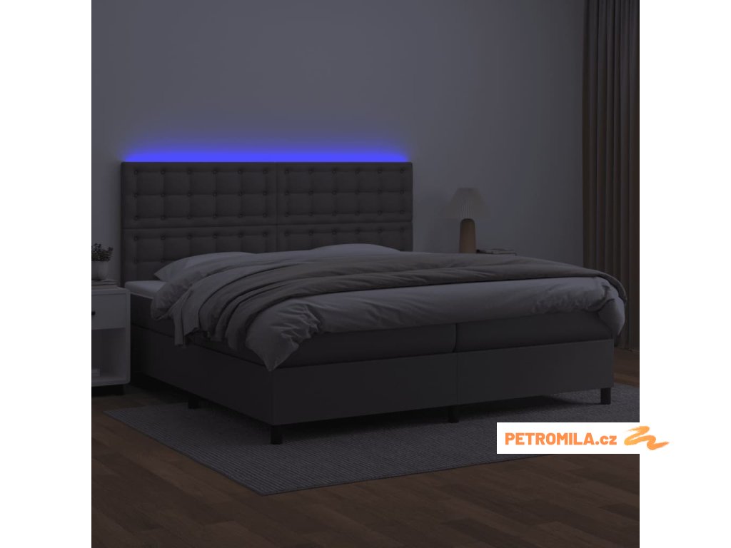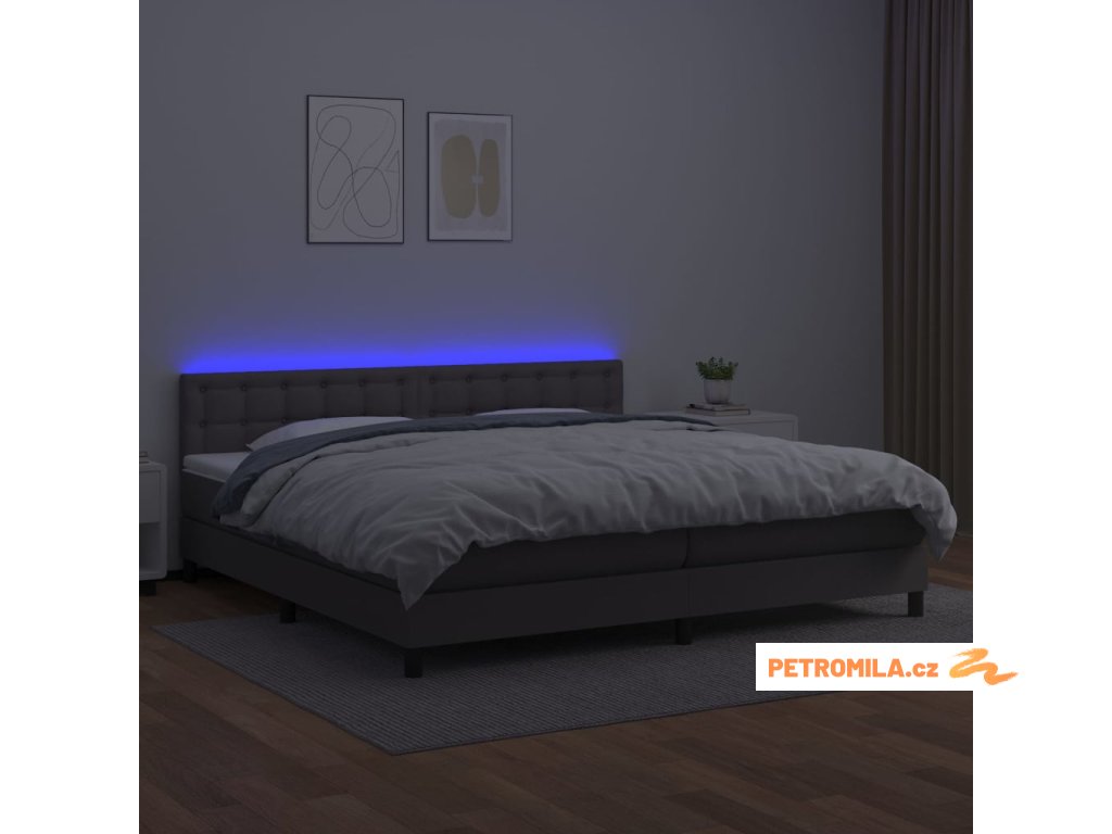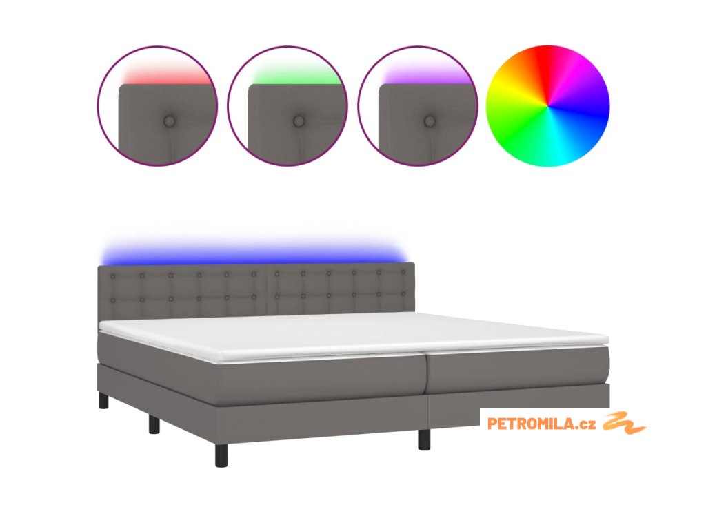 Box spring postel s matrací a LED šedá 200x200 cm umělá kůže