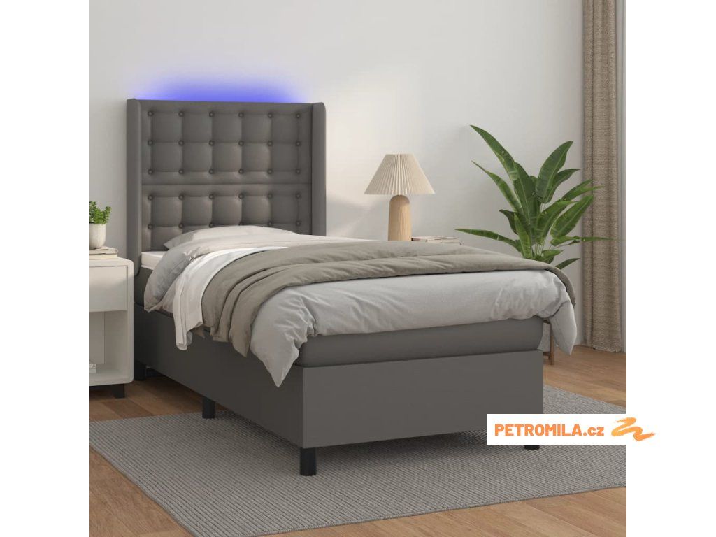 Box spring postel s matrací a LED šedá 90x190 cm umělá kůže