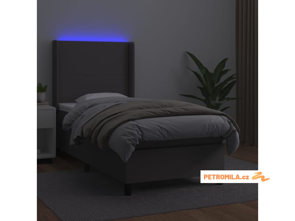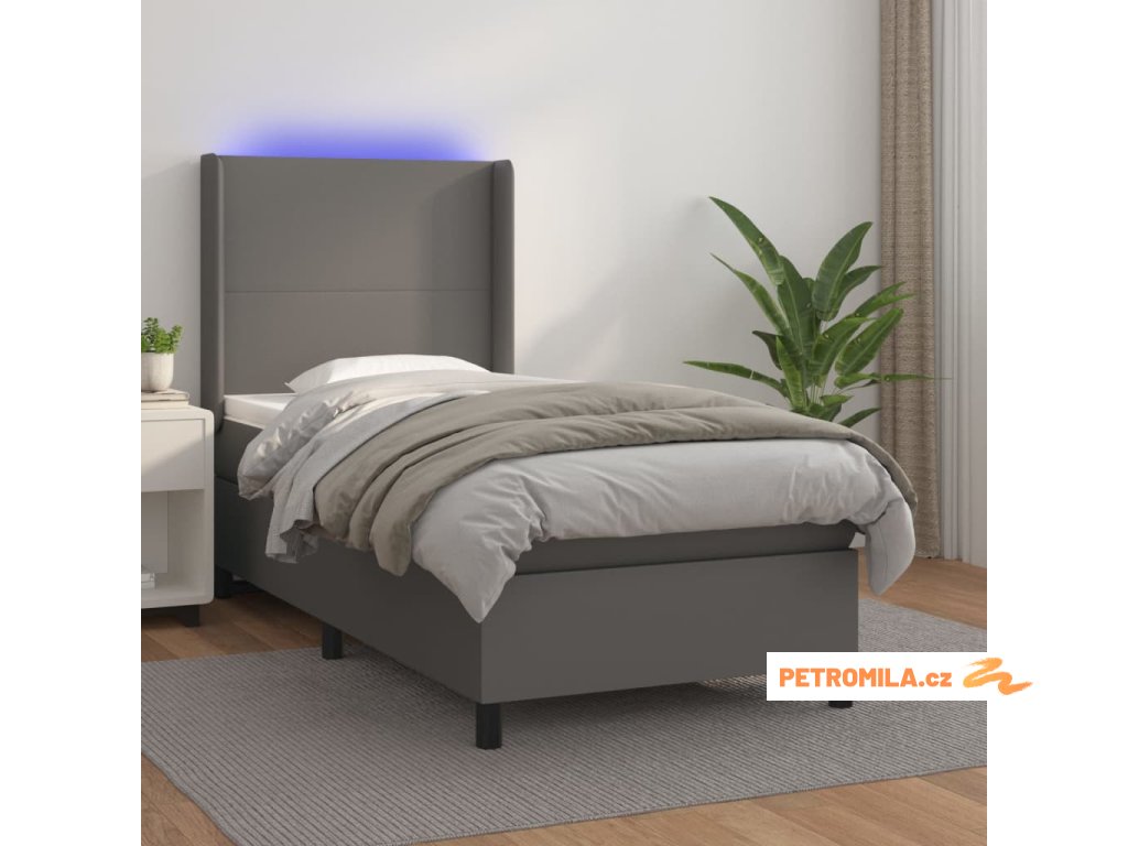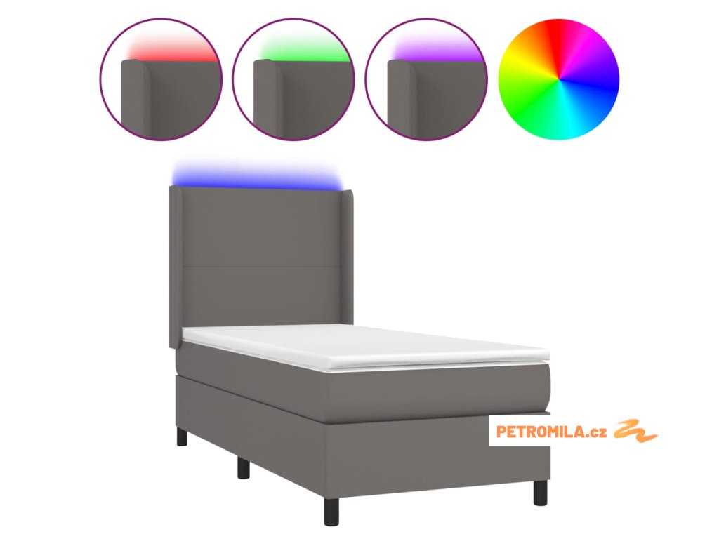 Box spring postel s matrací a LED šedá 90x200 cm umělá kůže