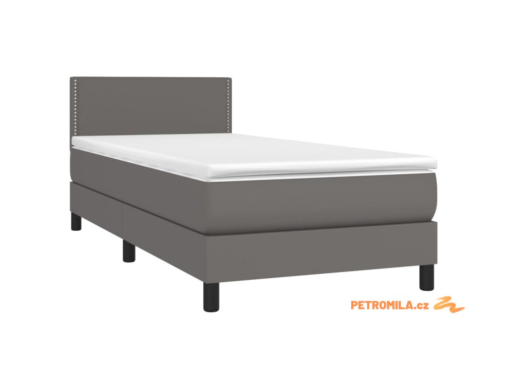 Box spring postel s matrací a LED šedá 90x200 cm umělá kůže