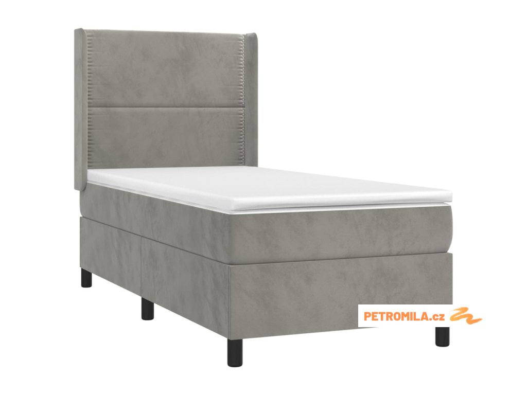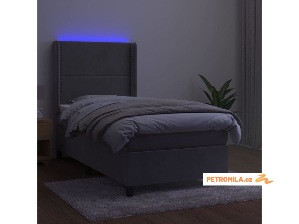 Box spring postel s matrací a LED světle šedá 100x200 cm samet