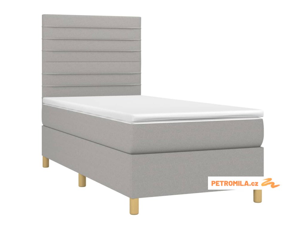 Box spring postel s matrací a LED světle šedá 100x200 cm textil