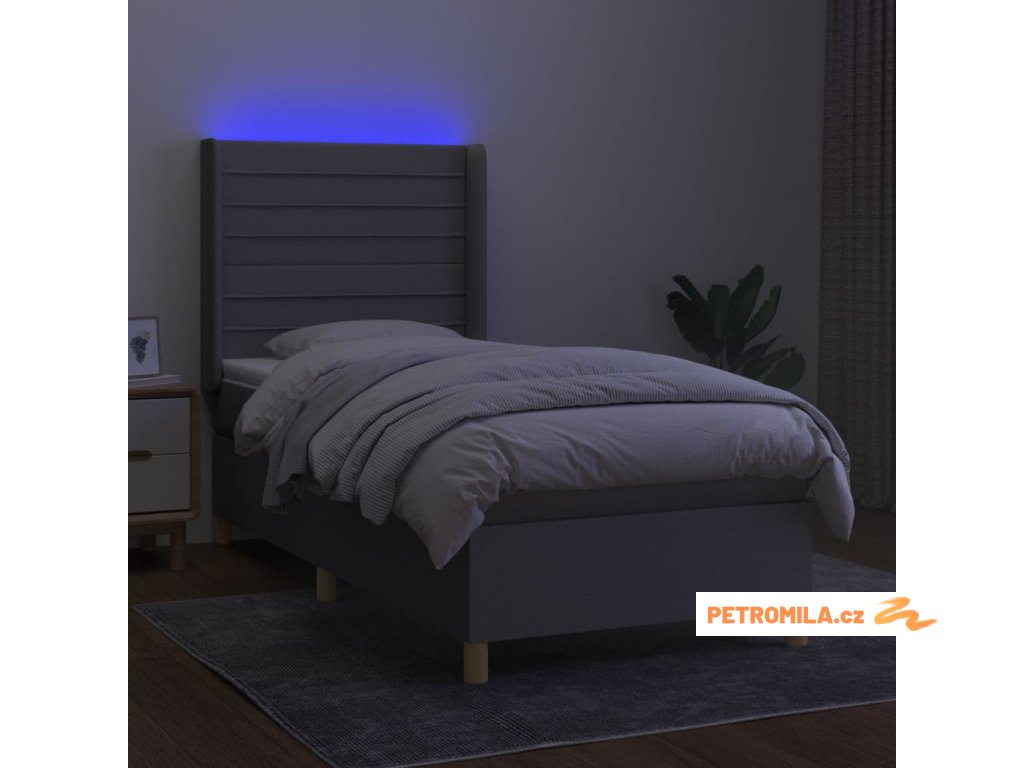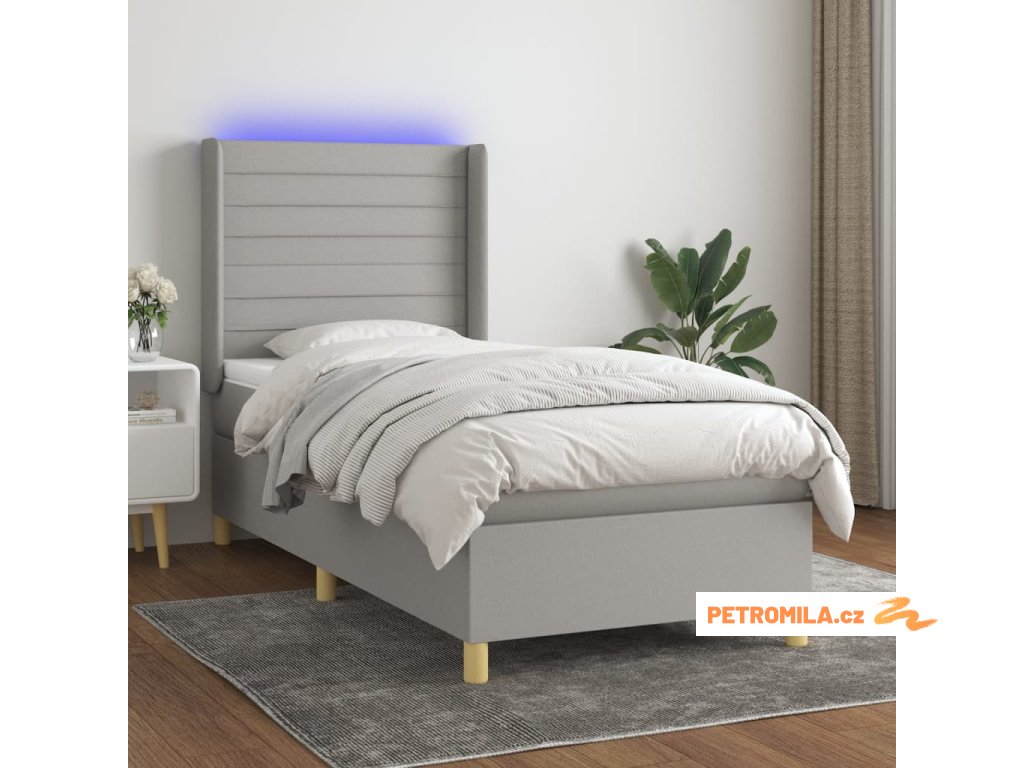 Box spring postel s matrací a LED světle šedá 100x200 cm textil