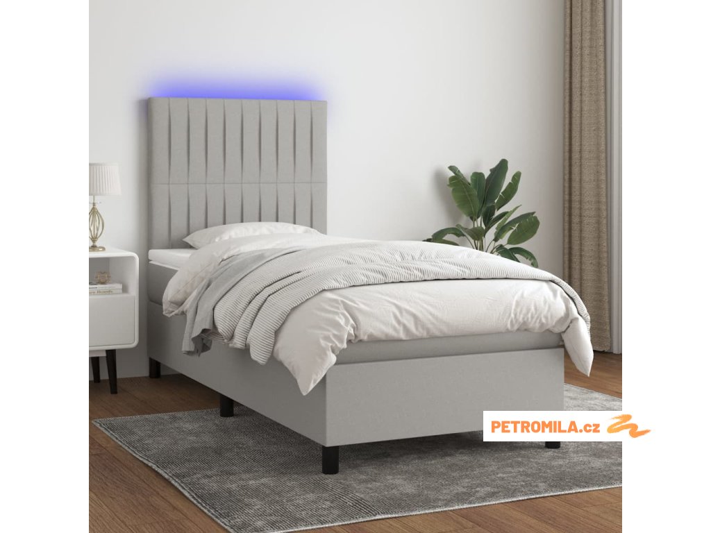 Box spring postel s matrací a LED světle šedá 100x200 cm textil