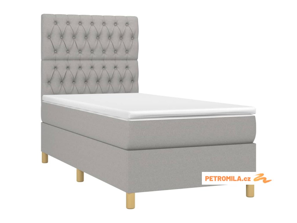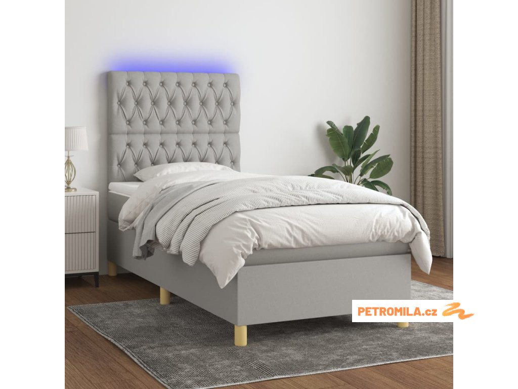 Box spring postel s matrací a LED světle šedá 100x200 cm textil
