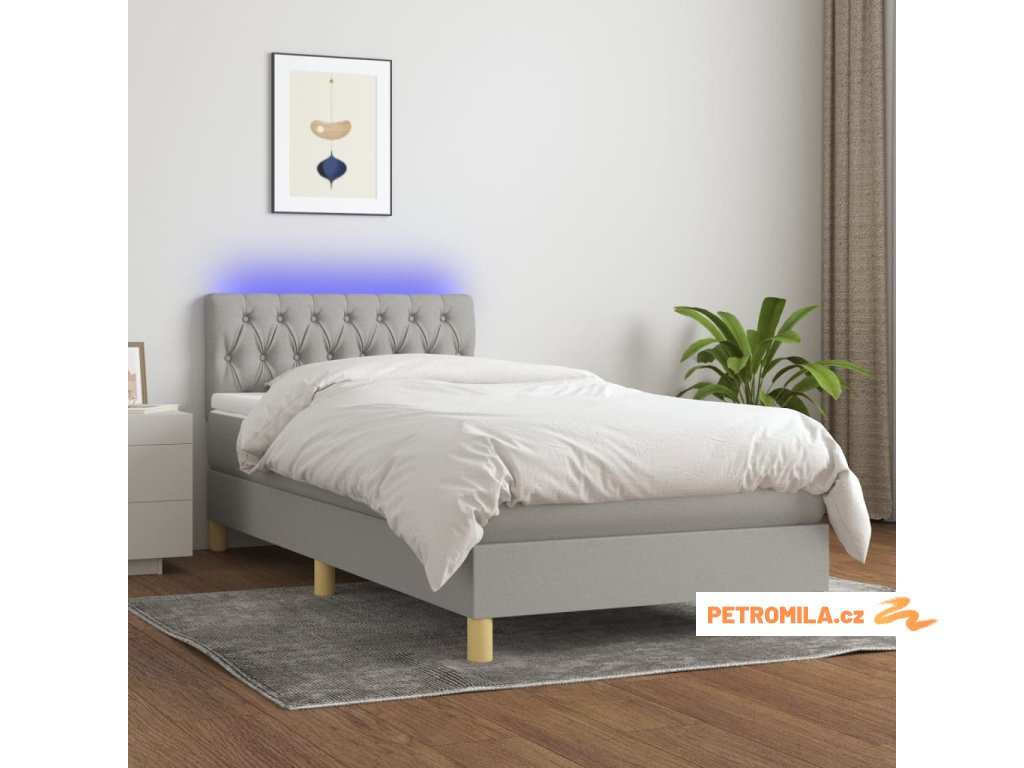 Box spring postel s matrací a LED světle šedá 100x200 cm textil