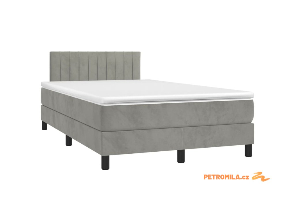 Box spring postel s matrací a LED světle šedá 120x200 cm samet