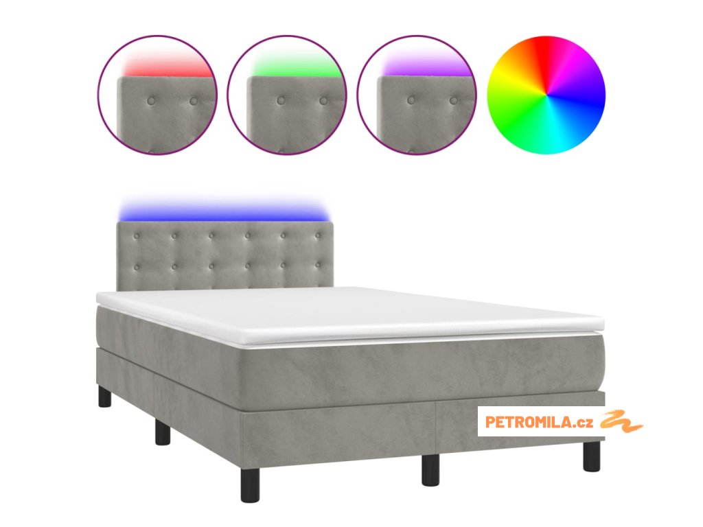 Box spring postel s matrací a LED světle šedá 120x200 cm samet