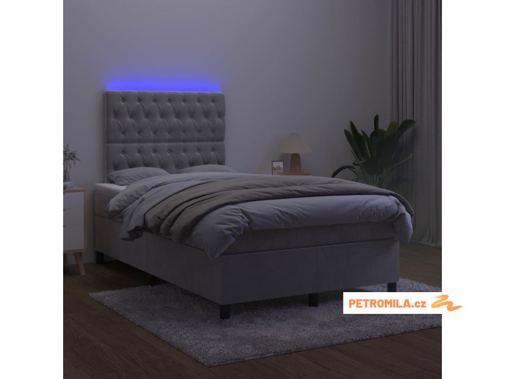 Box spring postel s matrací a LED světle šedá 120x200 cm samet