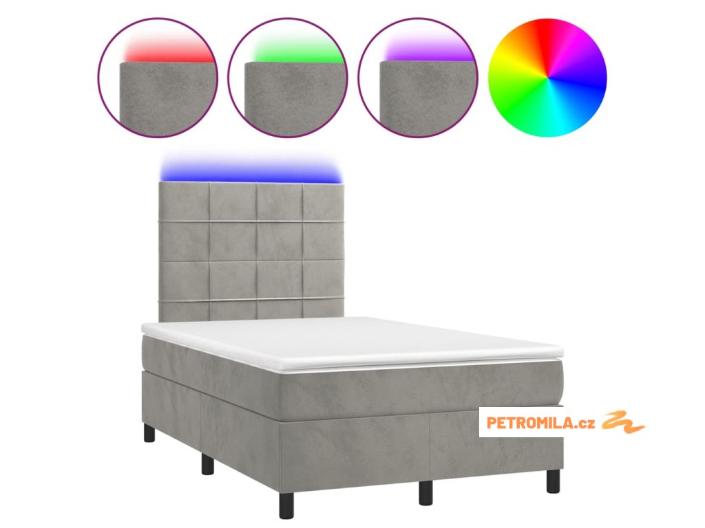 Box spring postel s matrací a LED světle šedá 120x200 cm samet