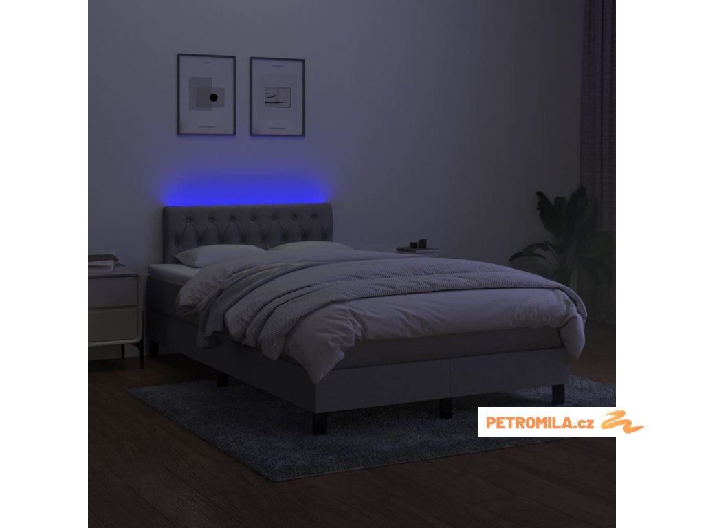 Box spring postel s matrací a LED světle šedá 120x200 cm textil