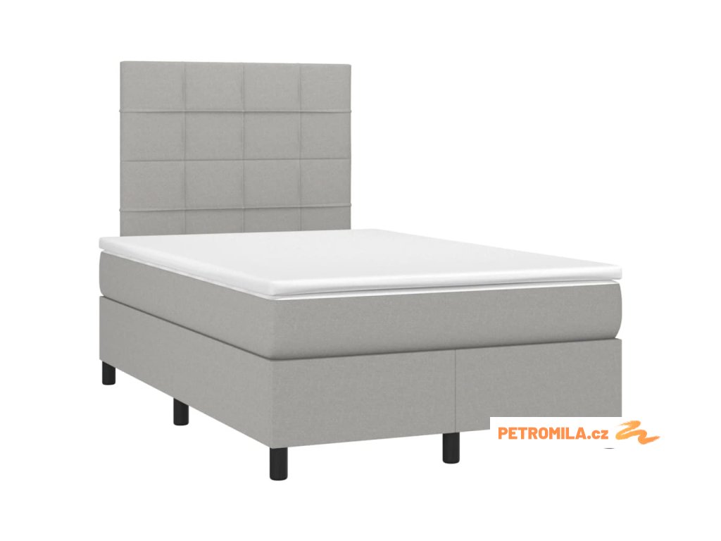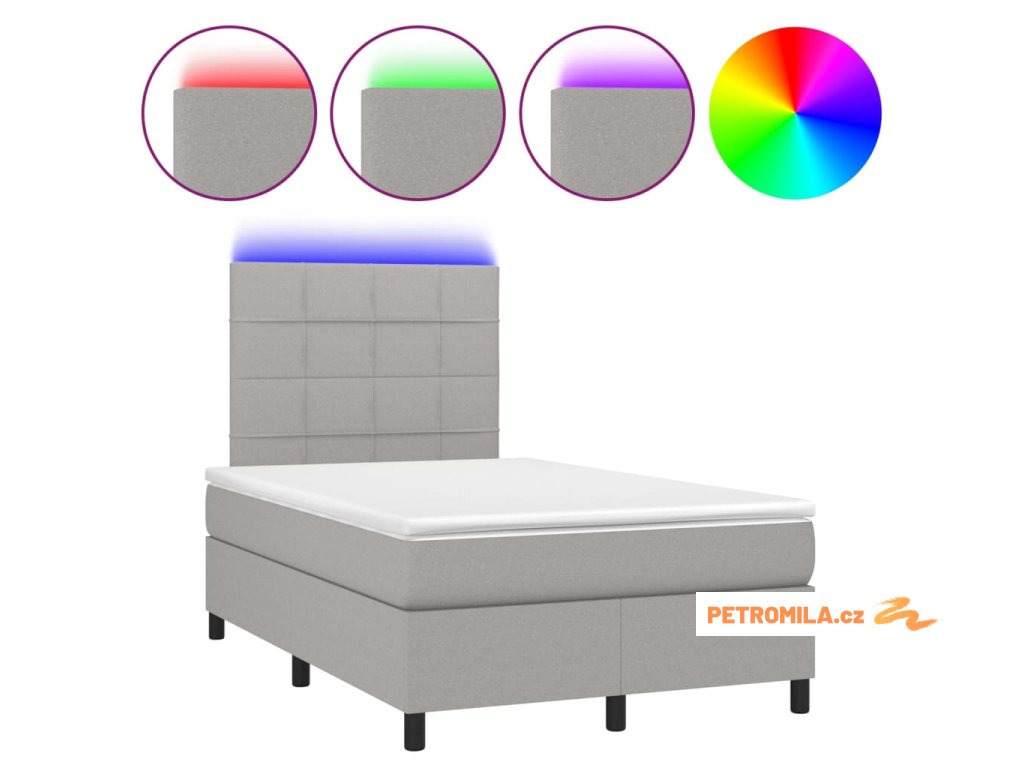 Box spring postel s matrací a LED světle šedá 120x200 cm textil