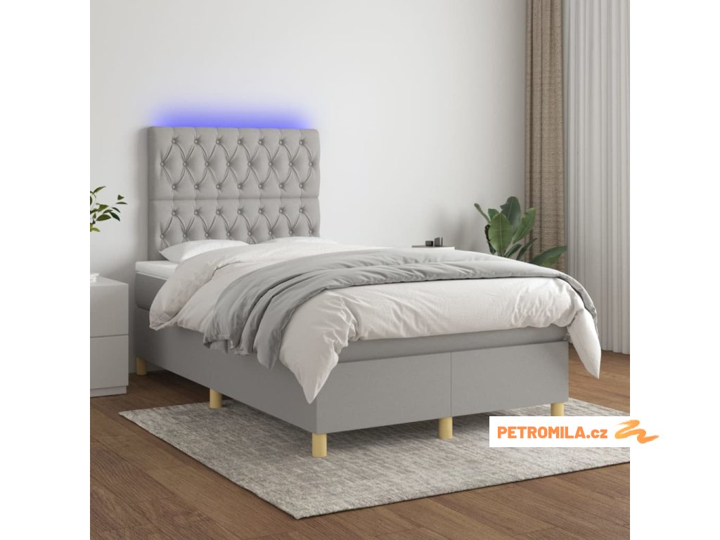 Box spring postel s matrací a LED světle šedá 120x200 cm textil