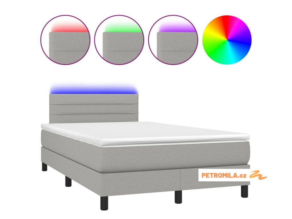 Box spring postel s matrací a LED světle šedá 120x200 cm textil