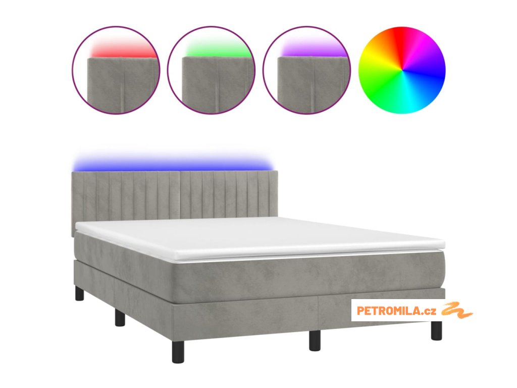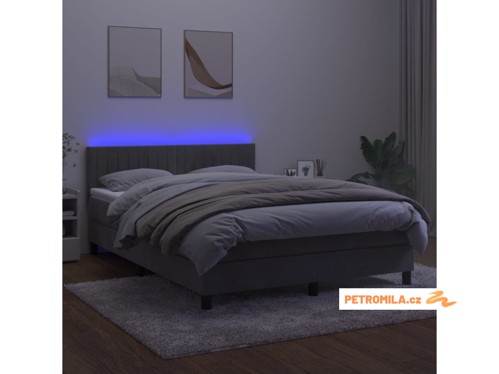 Box spring postel s matrací a LED světle šedá 140x190 cm samet