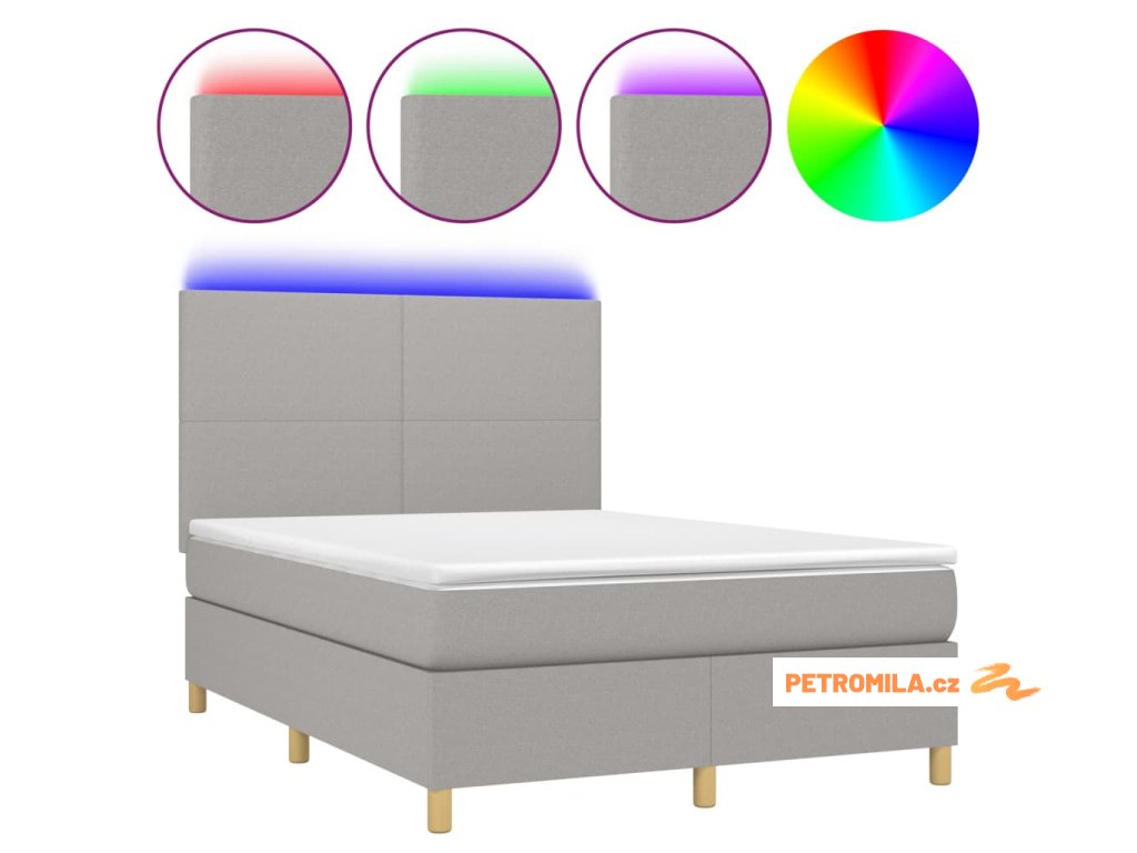 Box spring postel s matrací a LED světle šedá 140x190 cm textil