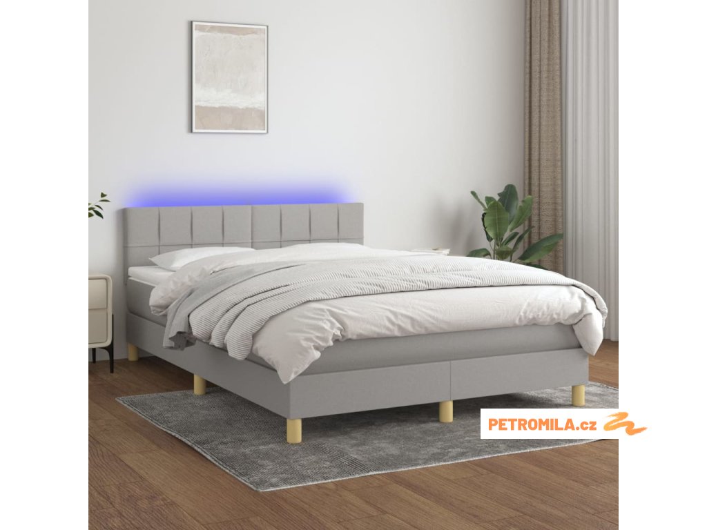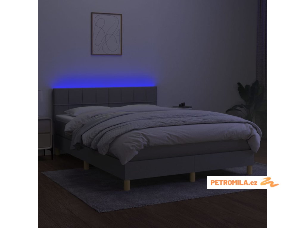Box spring postel s matrací a LED světle šedá 140x190 cm textil