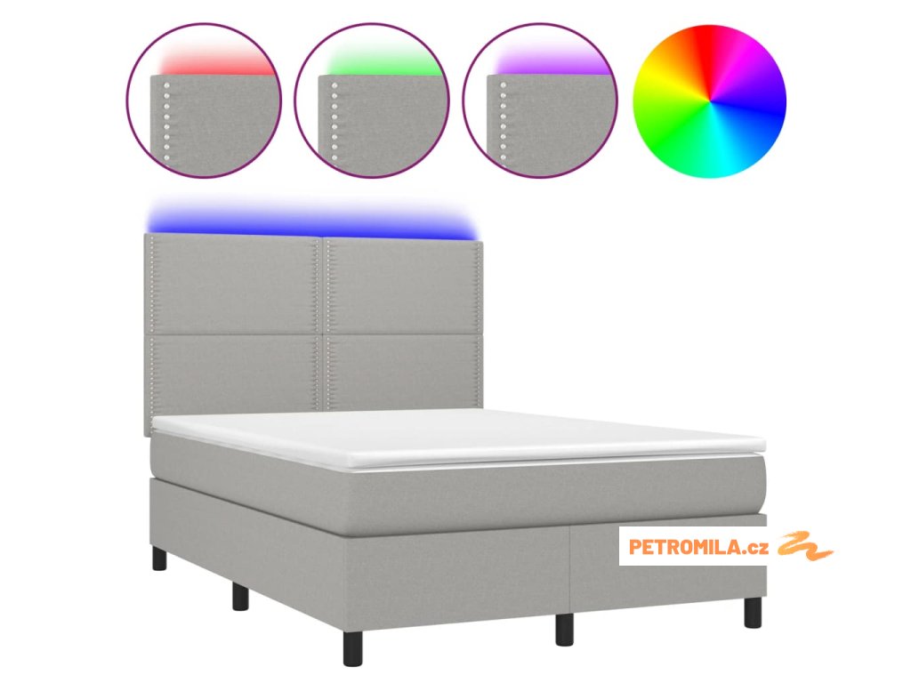 Box spring postel s matrací a LED světle šedá 140x190 cm textil