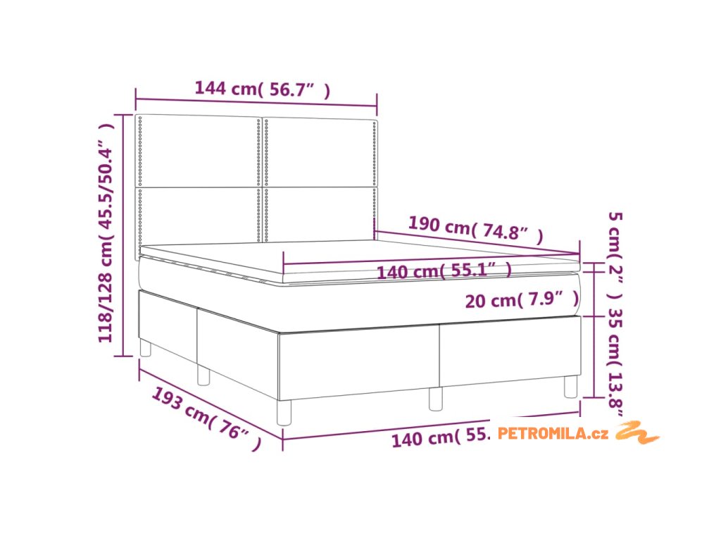 - Rozměry: 140 x 190 x 20 cm (Š x D x V)