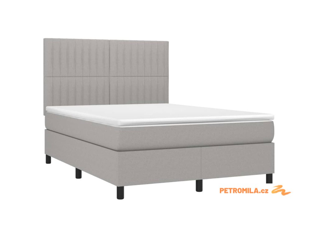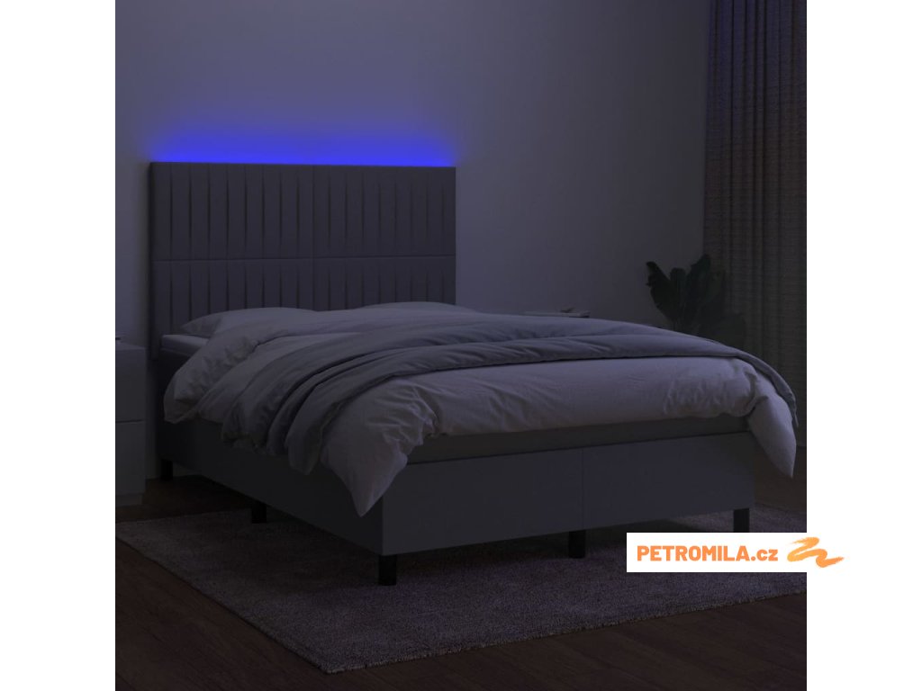 Box spring postel s matrací a LED světle šedá 140x190 cm textil