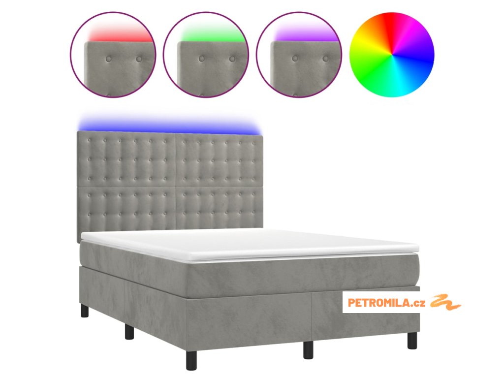 Box spring postel s matrací a LED světle šedá 140x200 cm samet