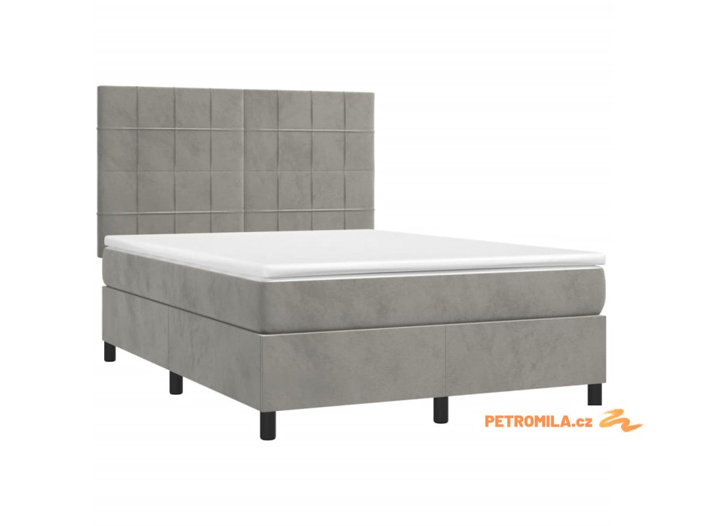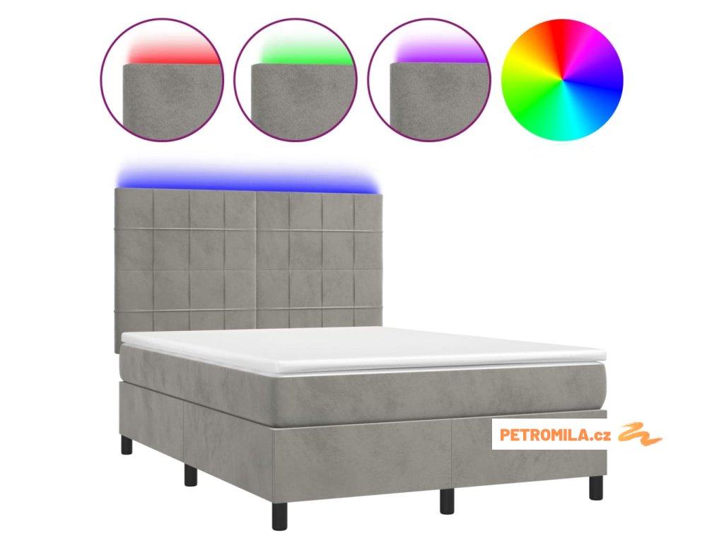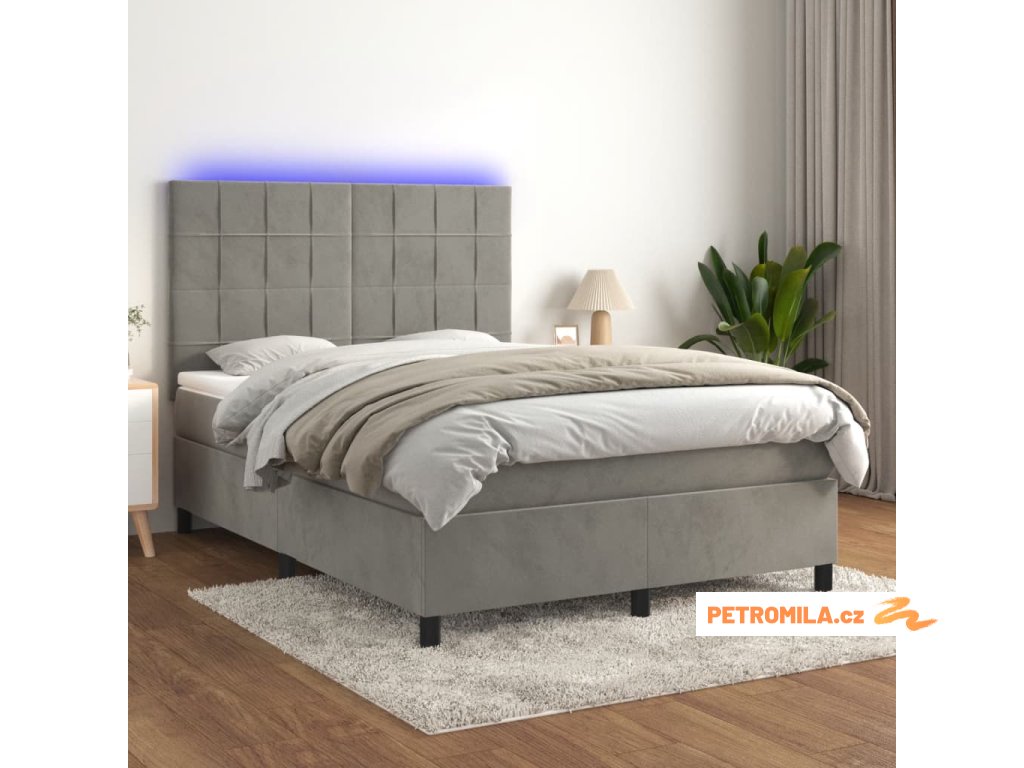 Box spring postel s matrací a LED světle šedá 140x200 cm samet