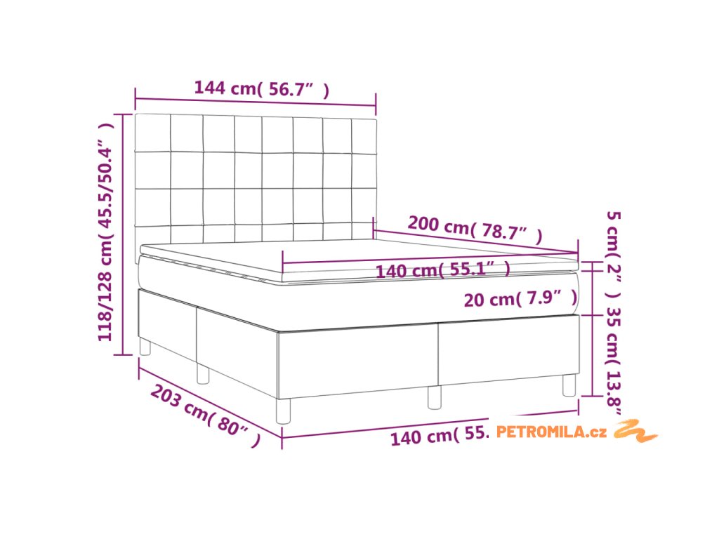 - Rozměry: 140 x 200 x 20 cm (Š x D x V)