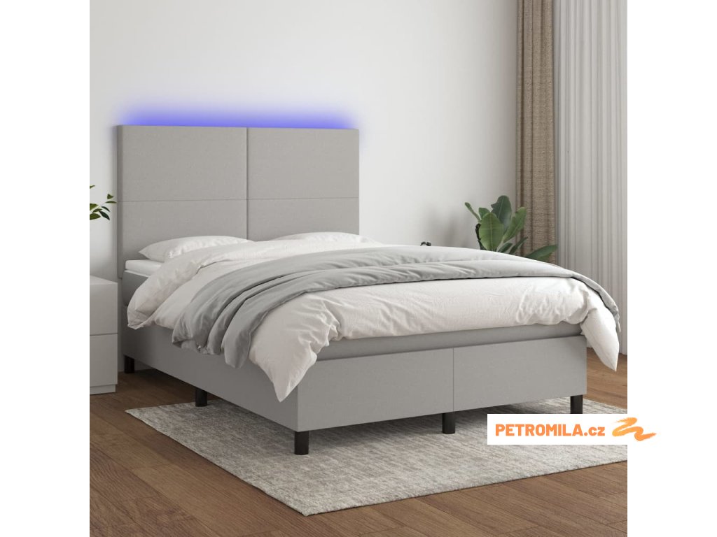Box spring postel s matrací a LED světle šedá 140x200 cm textil