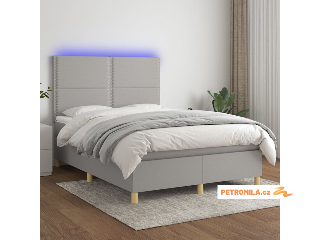 Box spring postel s matrací a LED světle šedá 140x200 cm textil