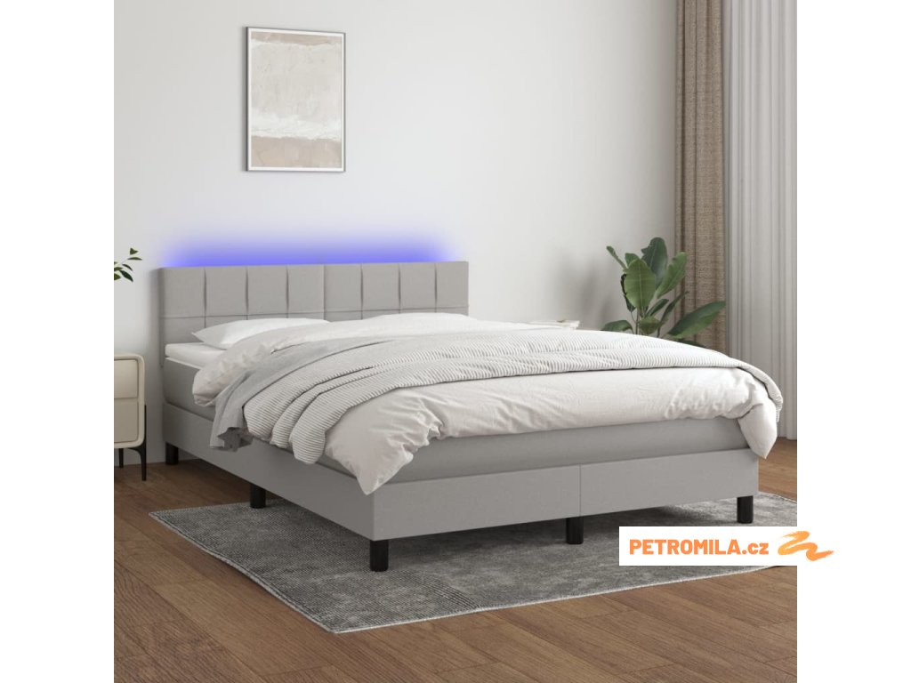 Box spring postel s matrací a LED světle šedá 140x200 cm textil