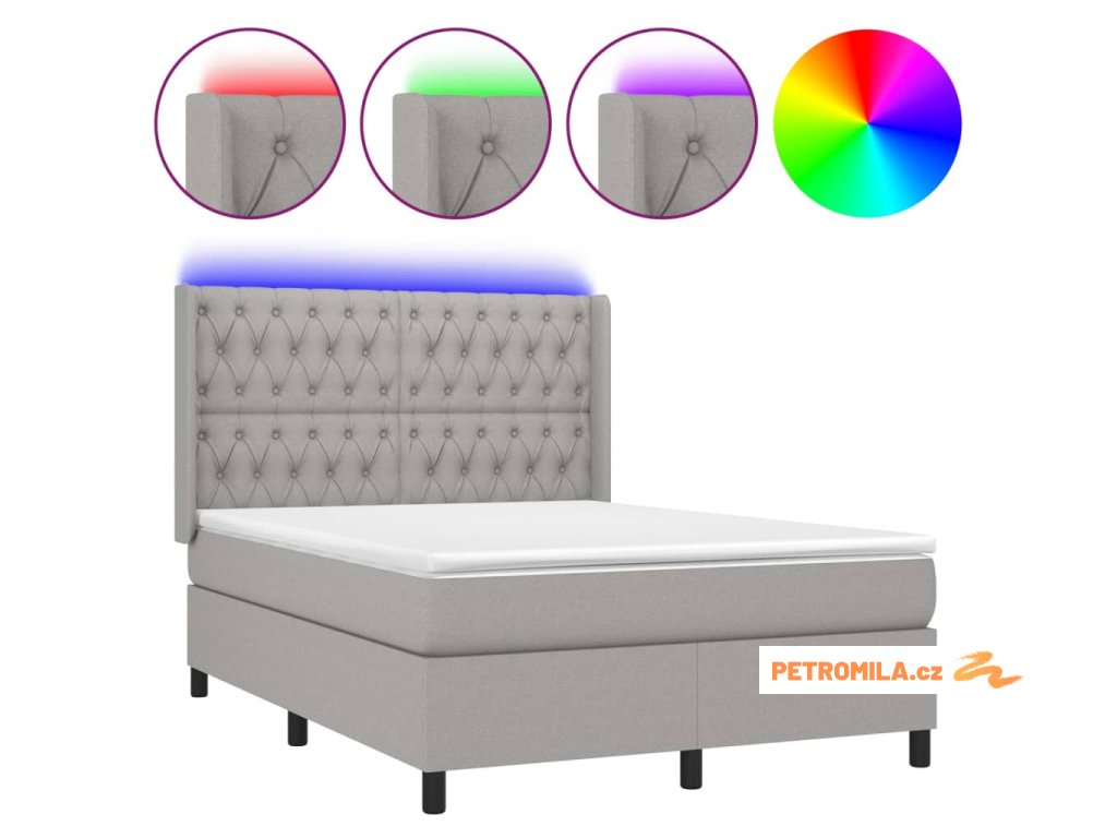 Box spring postel s matrací a LED světle šedá 140x200 cm textil