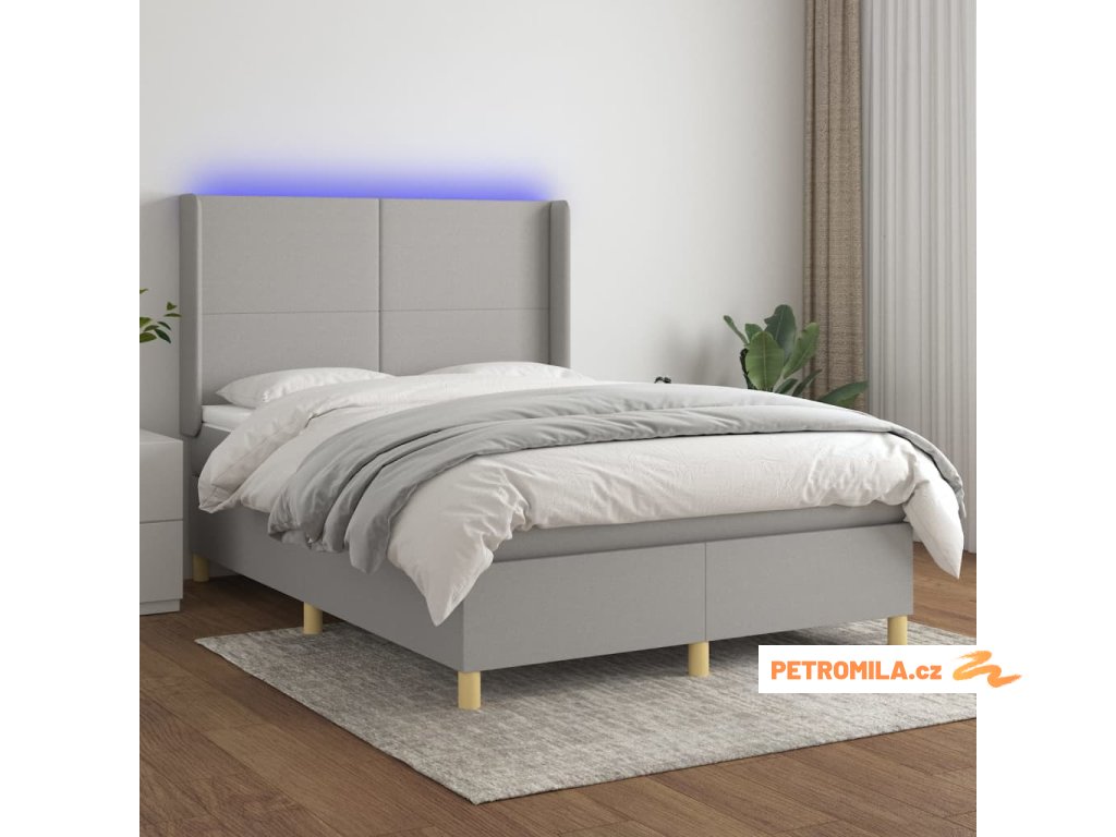 Box spring postel s matrací a LED světle šedá 140x200 cm textil