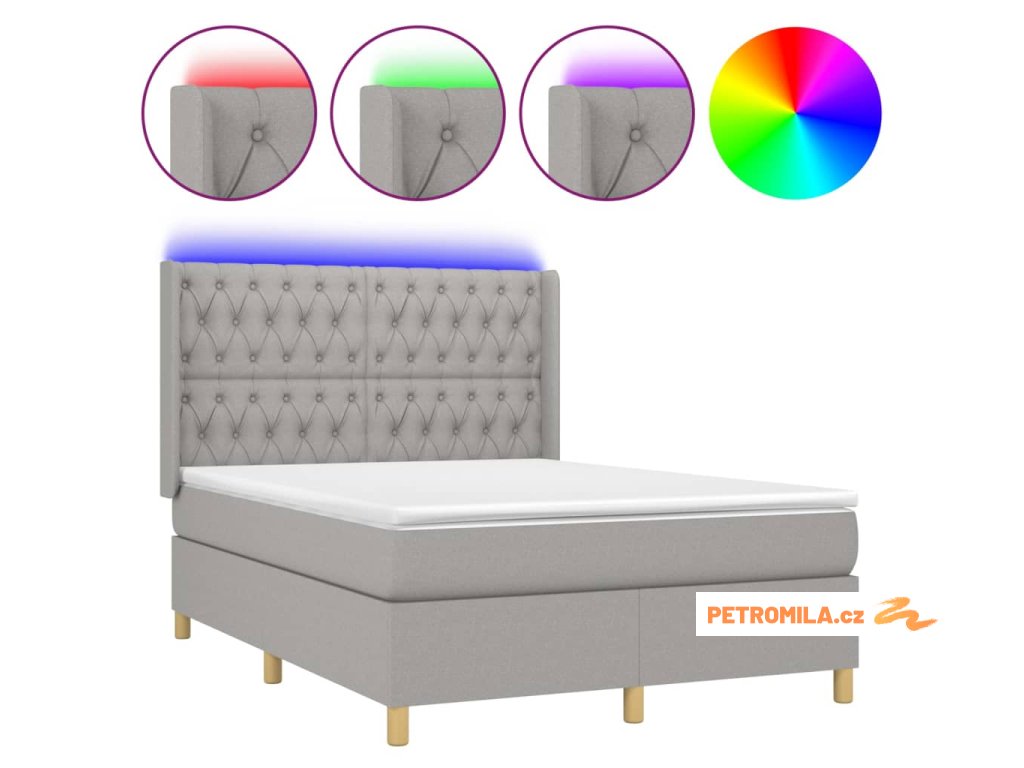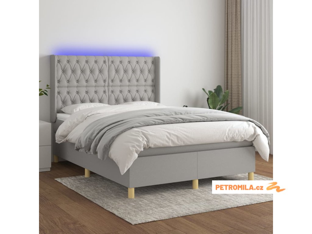 Box spring postel s matrací a LED světle šedá 140x200 cm textil