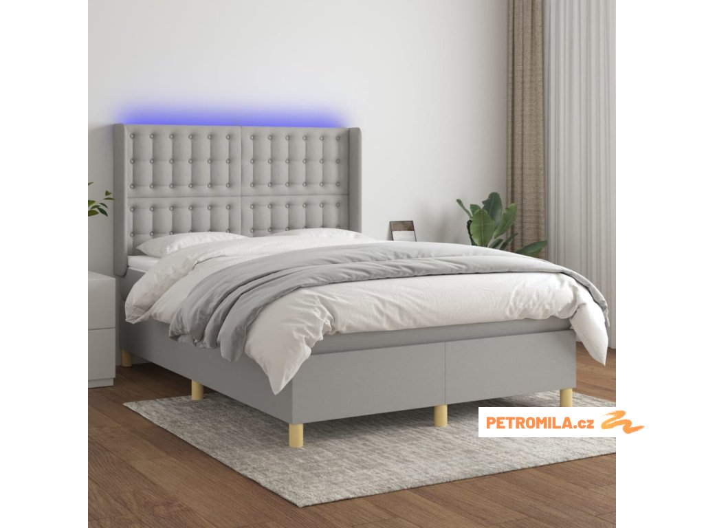 Box spring postel s matrací a LED světle šedá 140x200 cm textil