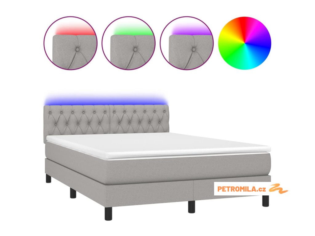 Box spring postel s matrací a LED světle šedá 140x200 cm textil