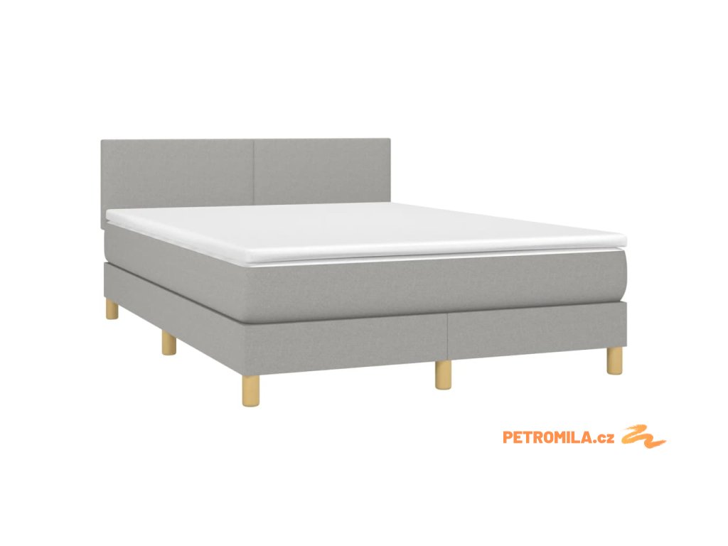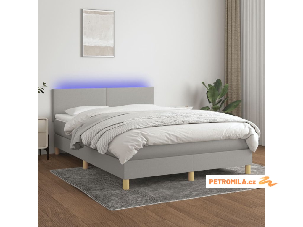 Box spring postel s matrací a LED světle šedá 140x200 cm textil
