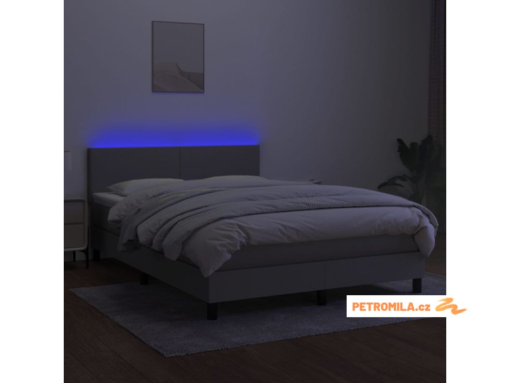 Box spring postel s matrací a LED světle šedá 140x200 cm textil