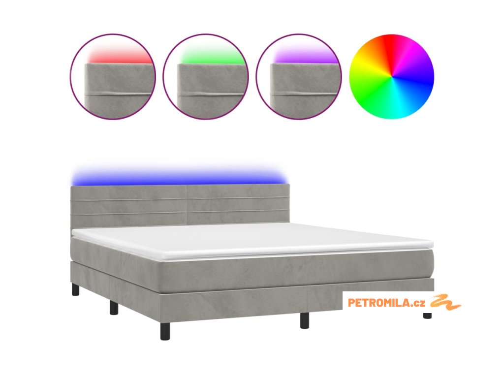 Box spring postel s matrací a LED světle šedá 160x200 cm samet