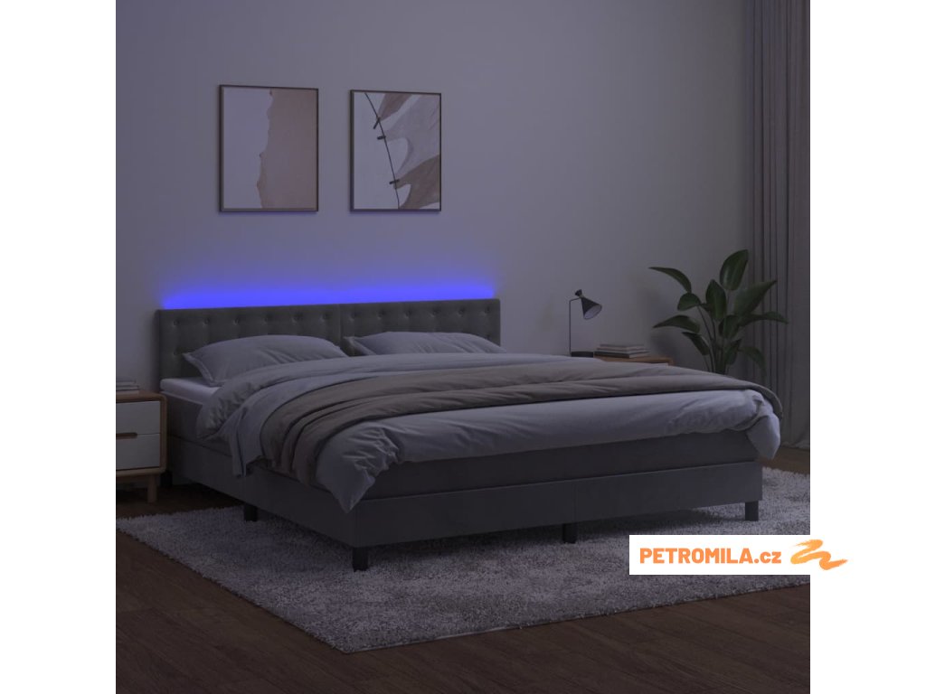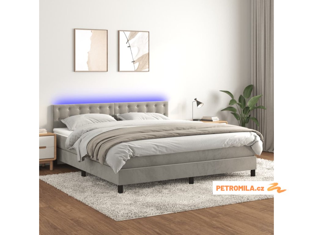Box spring postel s matrací a LED světle šedá 160x200 cm samet