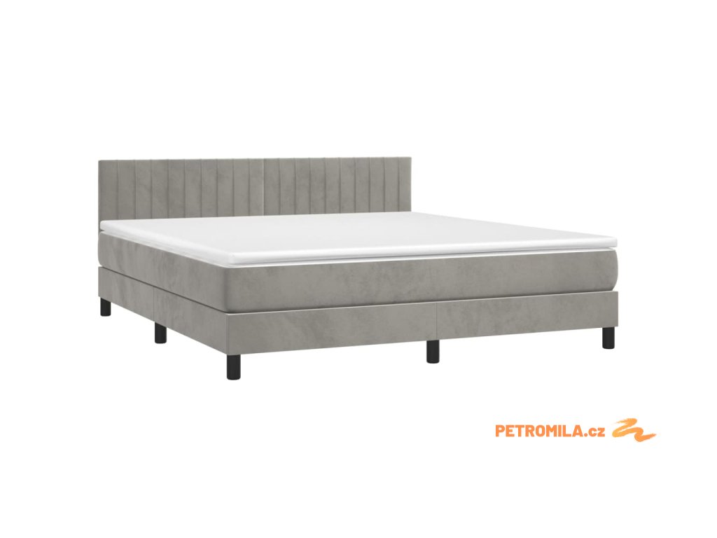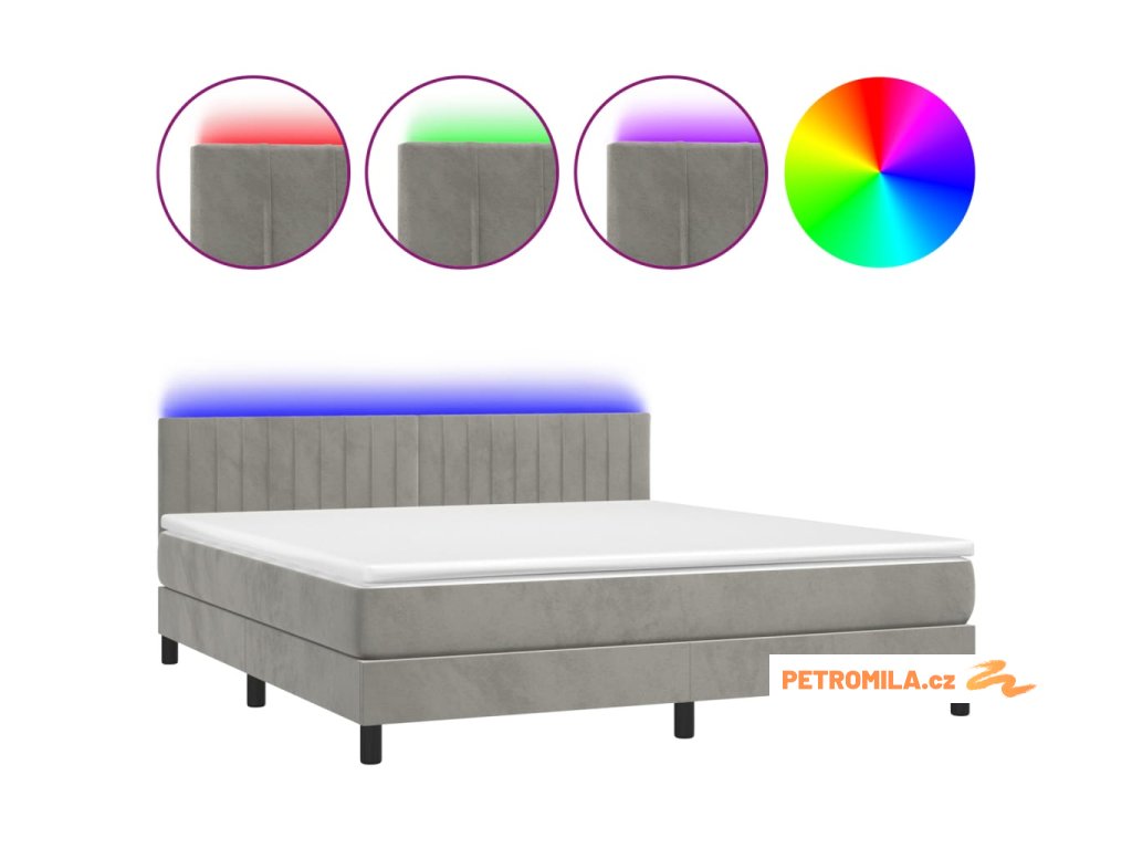 Box spring postel s matrací a LED světle šedá 160x200 cm samet
