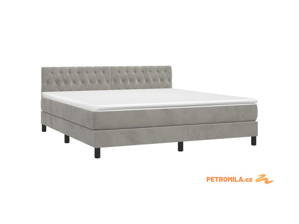 Box spring postel s matrací a LED světle šedá 160x200 cm samet