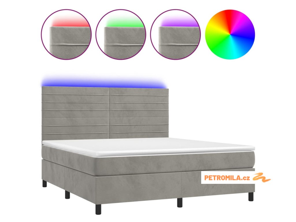 Box spring postel s matrací a LED světle šedá 160x200 cm samet