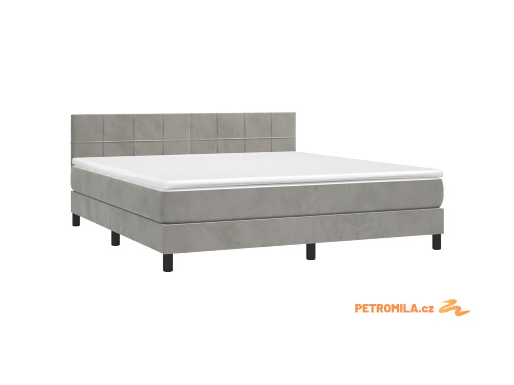 Box spring postel s matrací a LED světle šedá 160x200 cm samet