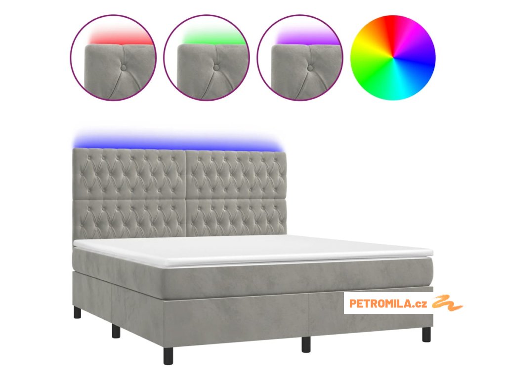 Box spring postel s matrací a LED světle šedá 160x200 cm samet