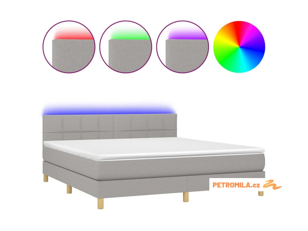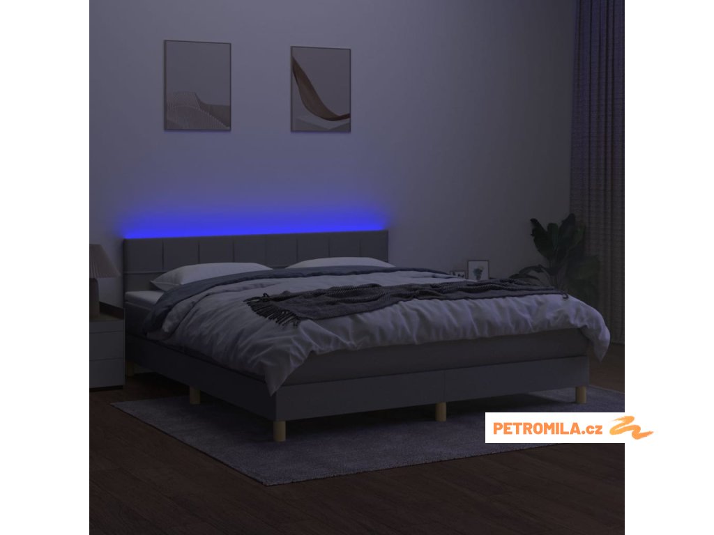 Box spring postel s matrací a LED světle šedá 160x200 cm textil