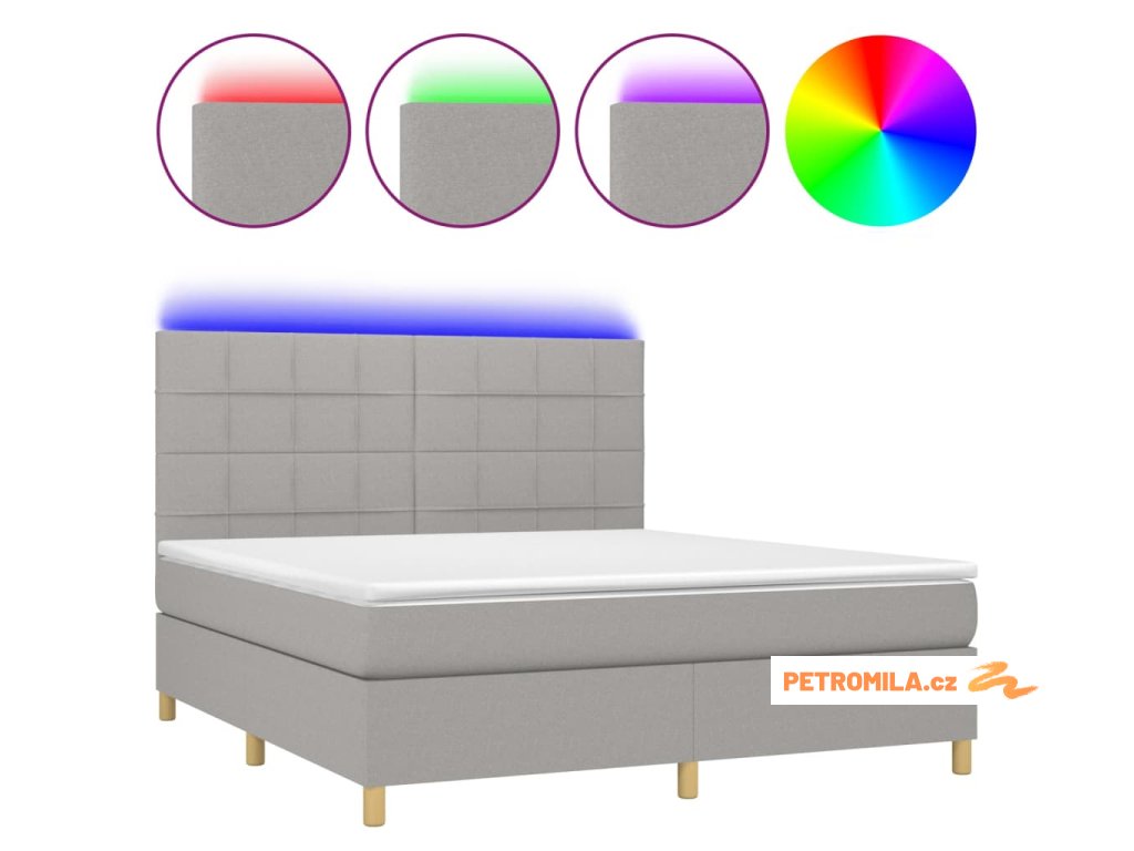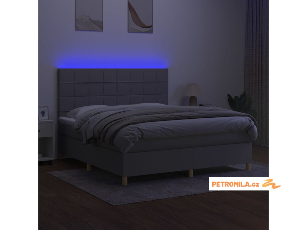 Box spring postel s matrací a LED světle šedá 160x200 cm textil