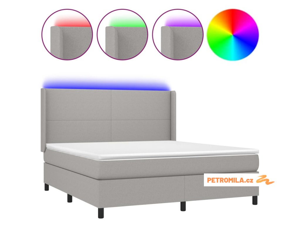 Box spring postel s matrací a LED světle šedá 160x200 cm textil